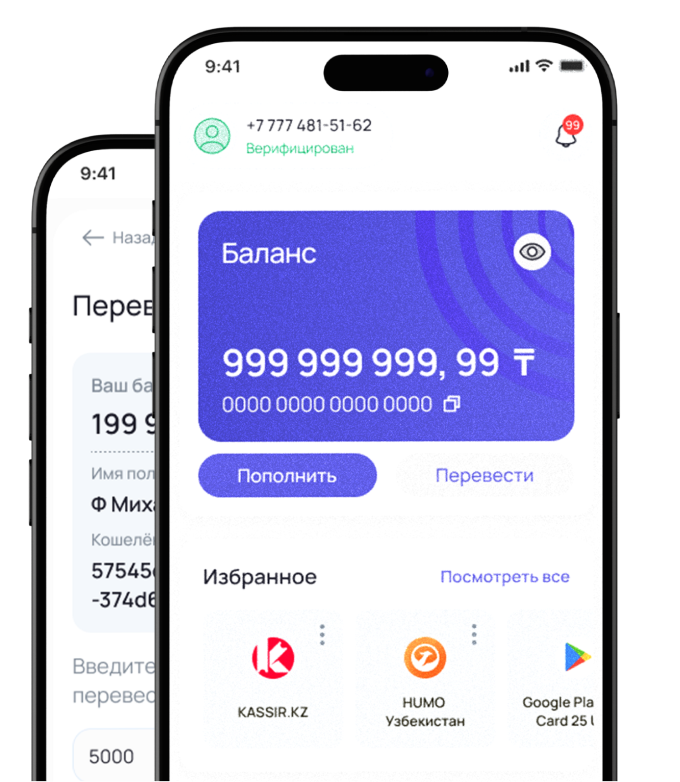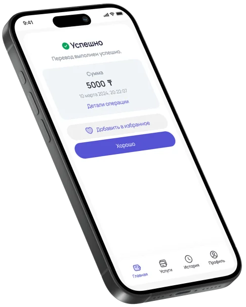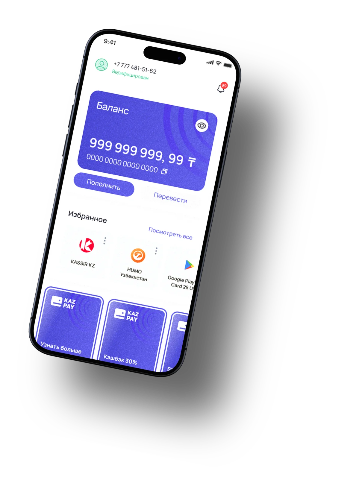 KazPay — электронный кошелёк для выполнения базовых финансовых операций.